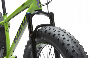 なんと、サスペンションフォーク付き…太いタイヤのエアボリュームにサスペンションフォークで極上の乗り味が期待できますね!!