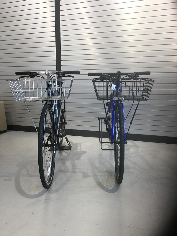 自店扱いのクロスバイクにもフロントバスケットやリアキャリアの装着可能車体もあります。ぜひスタッフにご相談ください。