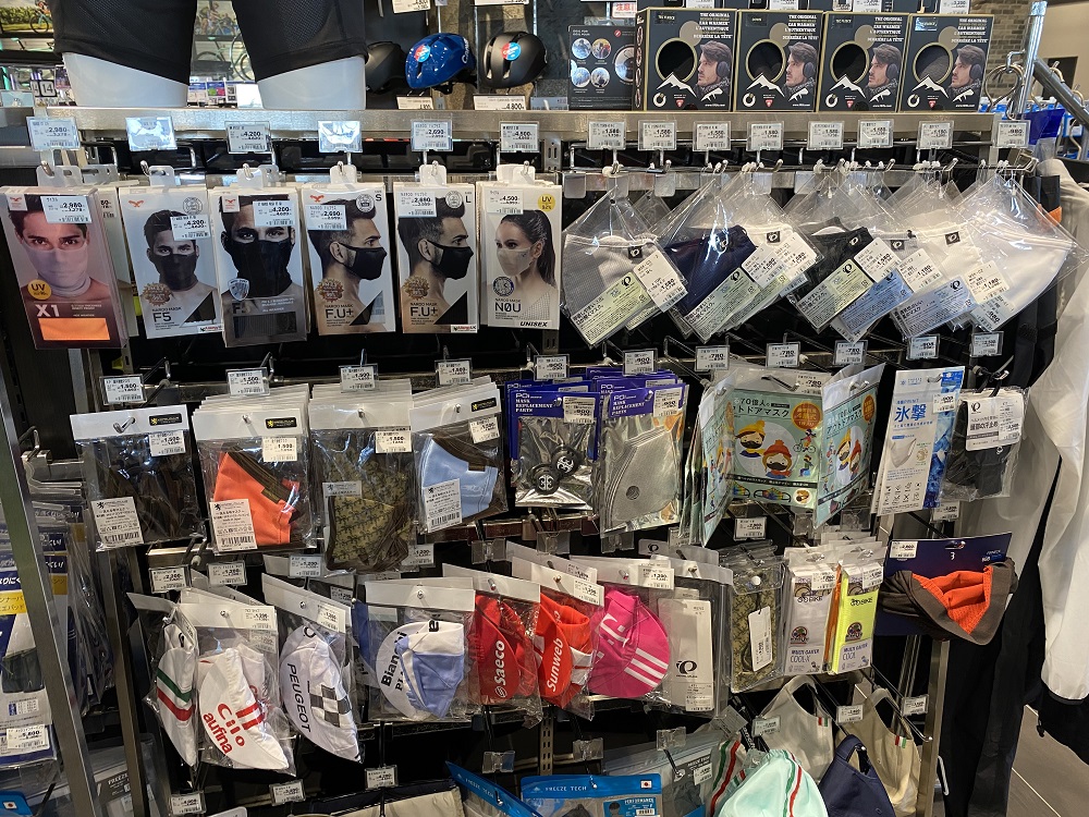 こちらもウェアメーカーのパールイズミ。夏用のマスクもラインナップ中。